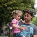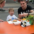 Friedberg (har). Die wohl größte Frühstücksgesellschaft der Wetterau traf sich am Sonntagvormittag auf der Kaiserstraße. »Wir kommen jedes Mal zu ›Friedberg frühstückt»«, meinte Jelica Milojicic. Zusammen mit Sohn Robin, Tochter Sherice und deren Freund Lars genoss sie das Erlebnis unter freiem Himmel.