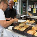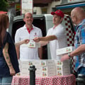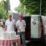 Ein Stück weiter wartete Steffen Mörler vor dem Lieferwagen seiner Bäckerei auf die letzten fünf Besucher, die das Mörler-Frühstück geordert hatten. Die bunten Kisten mit Croissants, Brötchen und Marmelade waren ein Hingucker. Wer was Warmes zum Frühstück wollte, hatte bei Peter Junker Flammkuchen oder Lachsnudeln bestellt.