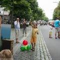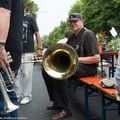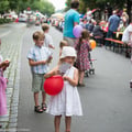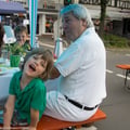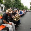 Für musikalische Unterhaltung sorgte »Conni’s Trio«. Saxofonistin Cornelia Ott, Bassist Gernot Schäfer und Wolfgang Richter am Keyboard spielten Swing-Standards. Fetzigen »Jazz unter der Bushaltestelle« bot Kalli Veltens Jazzband. Die Musiker zogen zwischendurch die Frühstücksmeile hoch und runter. Unterwegs waren den ganzen Mittag über »Frau Doktor Schnappel« und »Doc Schlotterbein« vom Verein Dr. mad. Clown. Das Duo verpasste Kindern und Erwachsenen eine rote Clownsnase. Um 12 Uhr öffneten die meisten Geschäfte zum verkaufsoffenen Sonntag. »Wir machen erst um 13 Uhr auf, außerdem sehen wir ja, wenn jemand zu uns will«, sagte Claudia Decher vom gleichnamigen Bettenhaus. Stattdessen frühstückte die Familie mit ihren Angestellten und Freunden weiter – »eine Stunde ist uns zu kurz«.