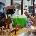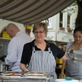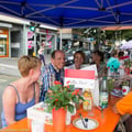 »Wir sind sehr zufrieden«, sagten Claudia Claussen und Ulf Berger, die beiden Macher von »Friedberg hat’s«. Berger hatte vor seinem Lederwarengeschäft einige Liegestühle und ein Planschbecken sowie einen alten Küchenschrank aufgestellt. »Der Urlaub beginnt in Friedberg.« Gegenüber im »Schafstall« der »Dunkel« kamen Adriele Salafrica und Harald Ströhle ganz schön ins Schwitzen. In einer großen Pfanne bereiteten die beiden Köche die belgische Spezialität »Fricasée aux pommes« vor. Viel Lob gab es für die gebratenen Apfelringe mit Zimt und Bacon.