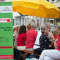Da hatte sie wohl Recht: Kaum einer frühstückte alleine. Nahezu alle Parteien waren ebenso vertreten wie die Vereine, von der Nachbarschaftshilfe »Aktion Punkt« über den Jazzclub und die Feuerwehr bis hin zum Montessori-Campus. Die weiteste Anreise hatte Henry Bühler, früherer Geschäftsführer des Kaufhauses Joh und einstiges Vorstandsmitglied der veranstaltenden Werbegemeinschaft »Friedberg hat’s«. Er war aus Eutin angereist und hatte »mein altes Joh-Team« (Bühler) zum Frühstück eingeladen. Über 20 frühere Mitarbeiter waren gekommen. »Wir frühstücken vor der Joh-Ruine«, meinte eine frühere Verkäuferin, und alle lachten.