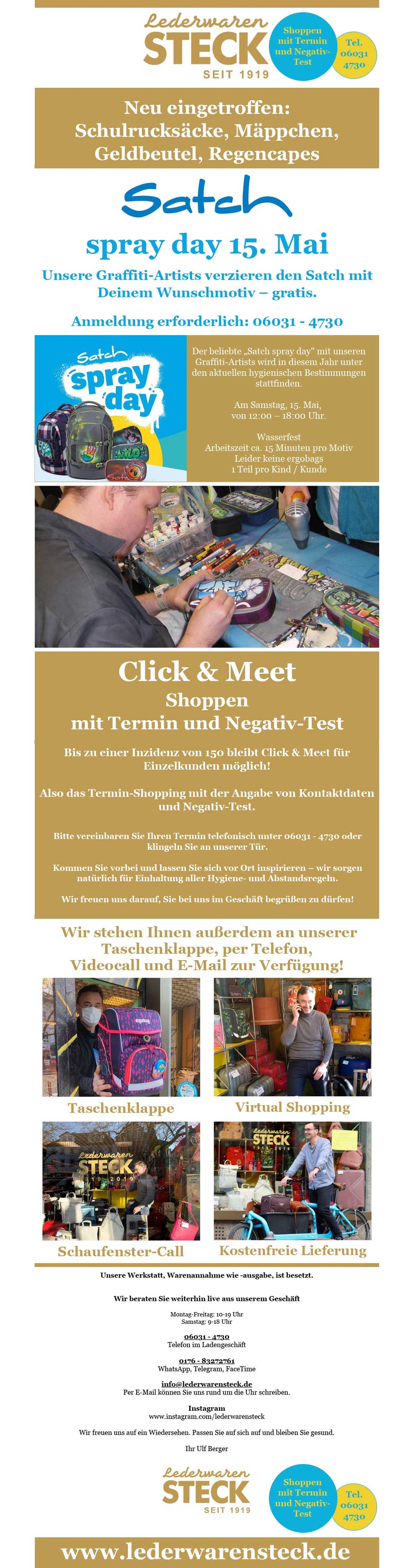 Satch spray day am 15. Mai / Anmeldung erforderlich