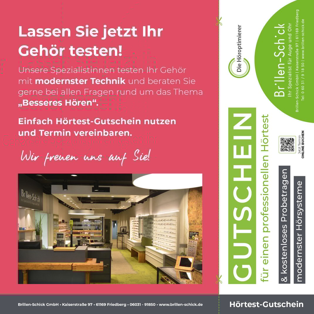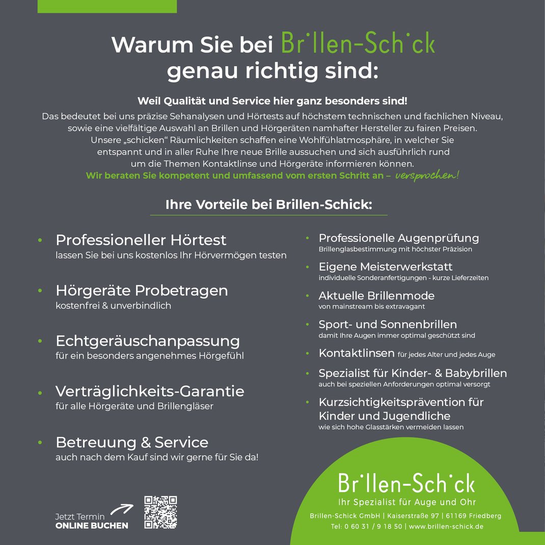 Brillen-Schick / Kaiserstr. 97 / 61169 Friedberg / Tel.: 06031 - 91850 / info@brillen-schick.de / www.brillen-schick.de