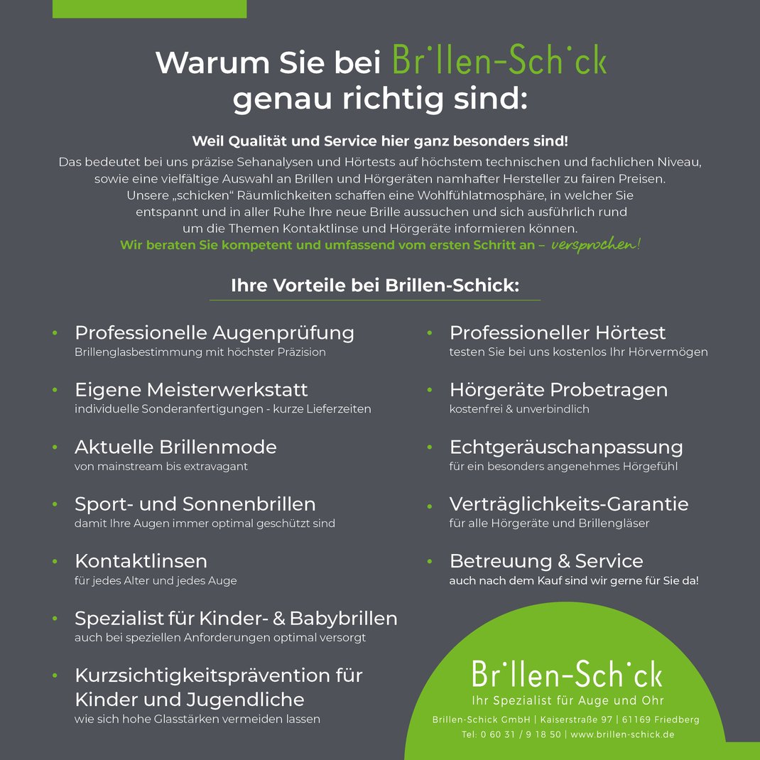 Brillen-Schick / Kaiserstr. 97 / 61169 Friedberg / Tel.: 06031 - 91850 / info@brillen-schick.de / www.brillen-schick.de