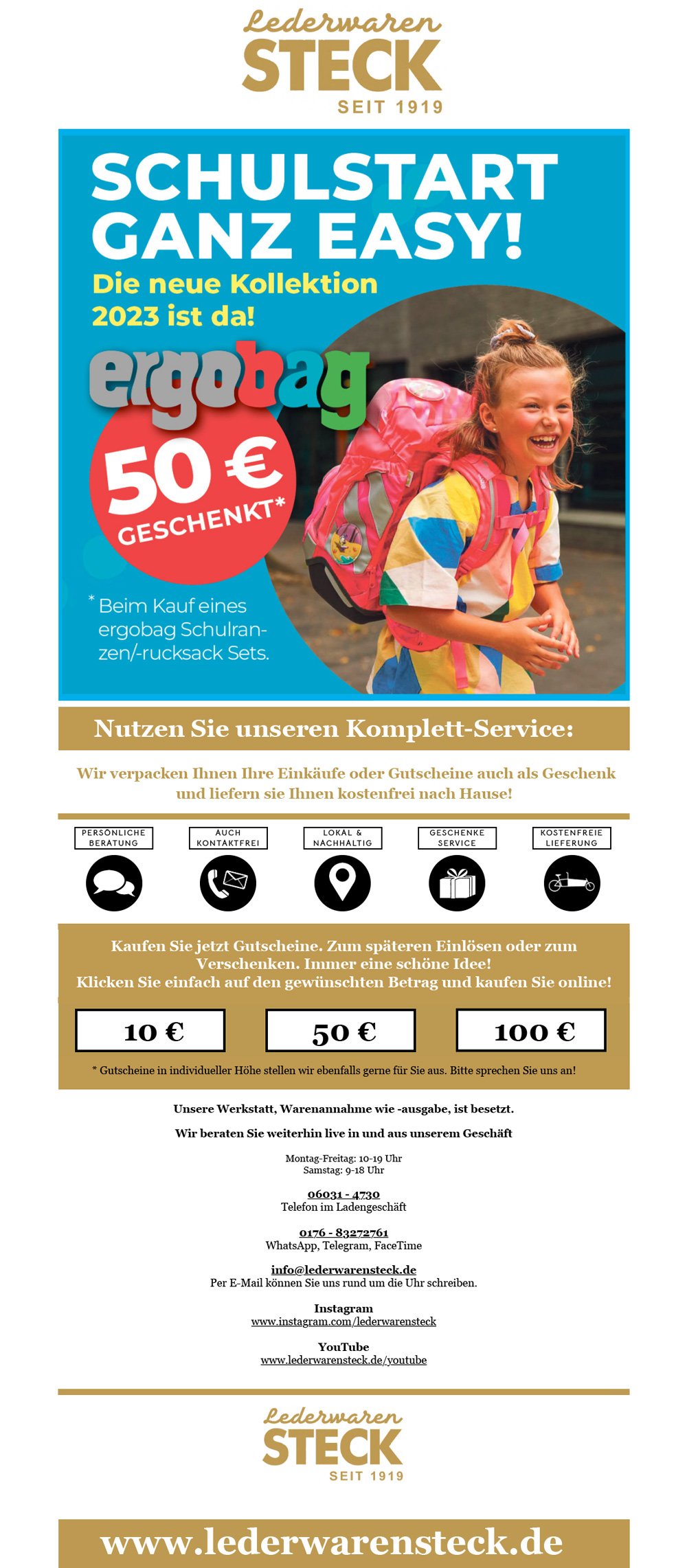 info@lederwarensteck.de / www.lederwarensteck.de / www.instagram.com/lederwarensteck