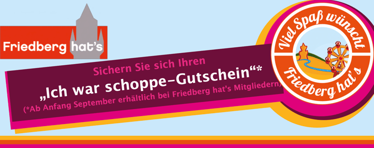 Sonntag, 15.09. ist in Friedberg verkaufsoffen, von 12 bis 18 Uhr.