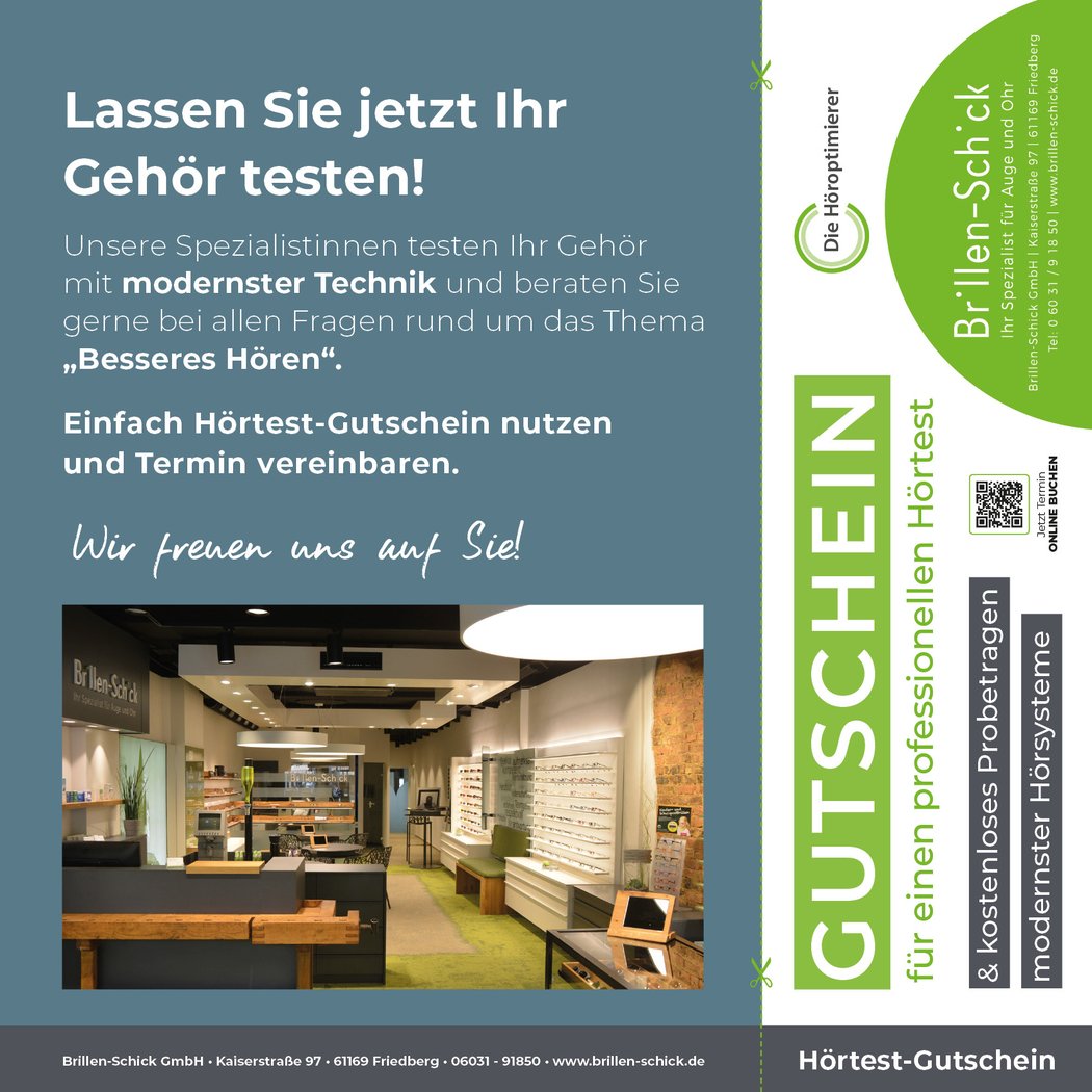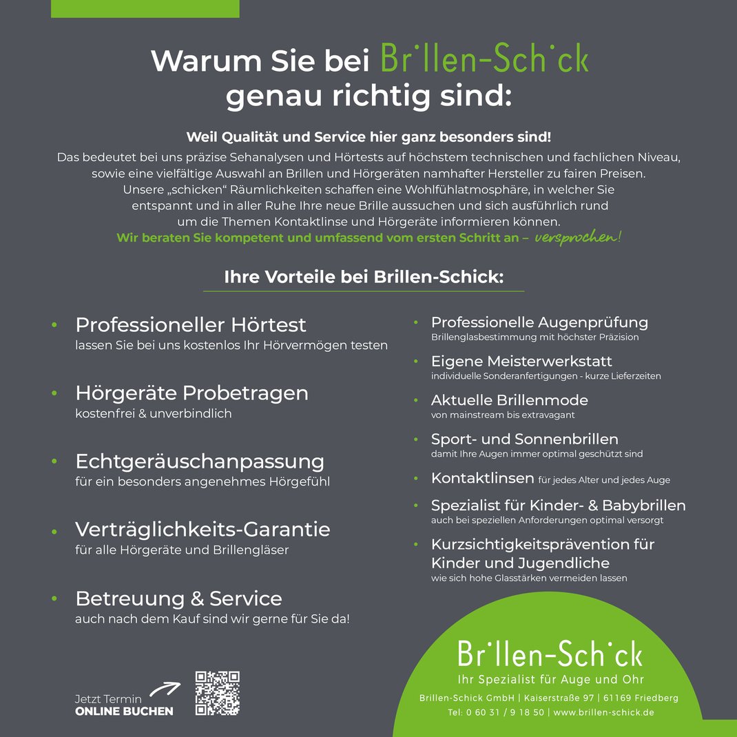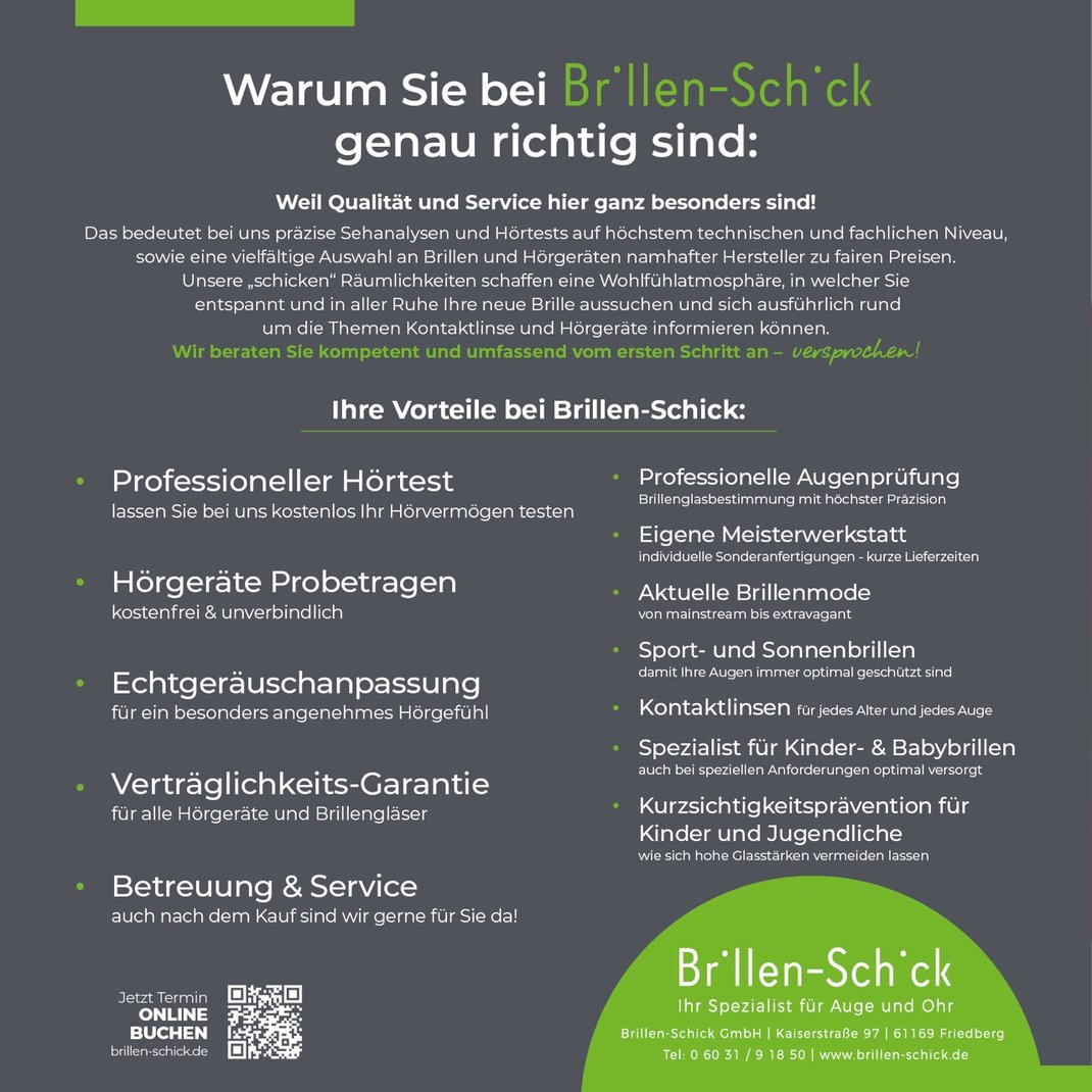 Brillen Schick / Kaiserstr. 97 / 61169 Friedberg / Tel.: 06031 - 91850 / info@brillen-schick.de / www.brillen-schick.de