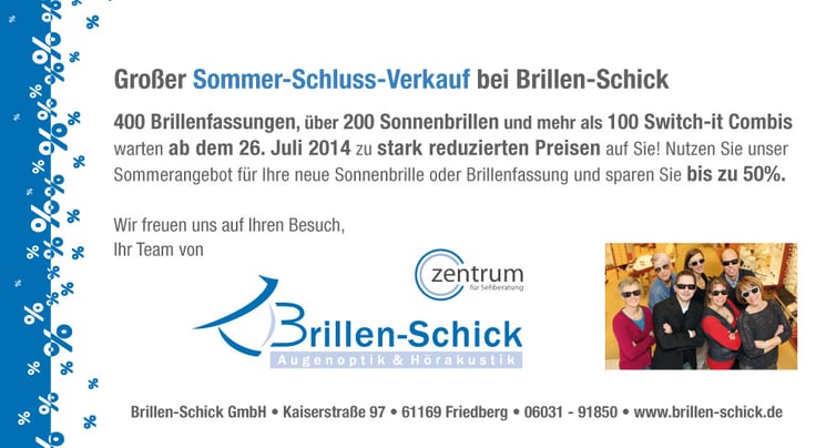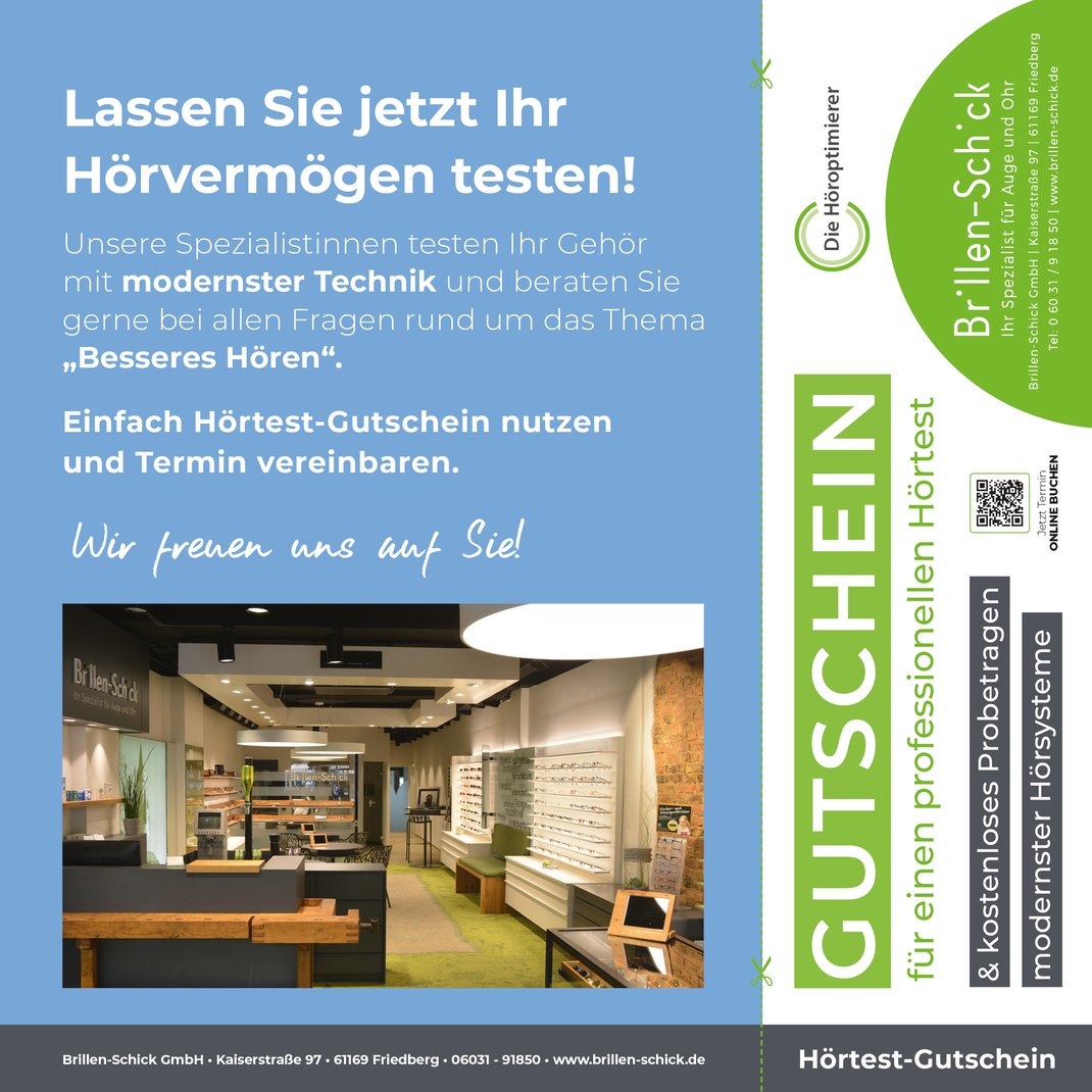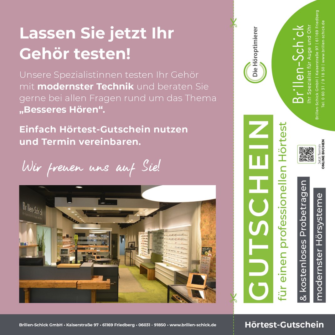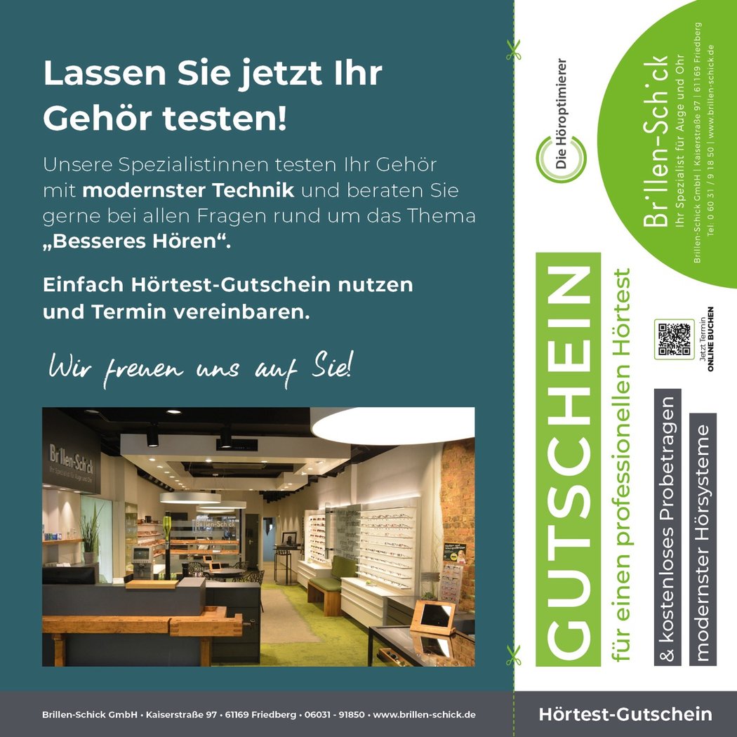 Brillen Schick / Kaiserstr. 97 / 61169 Friedberg / Tel.: 06031 - 91850 / info@brillen-schick.de / www.brillen-schick.de