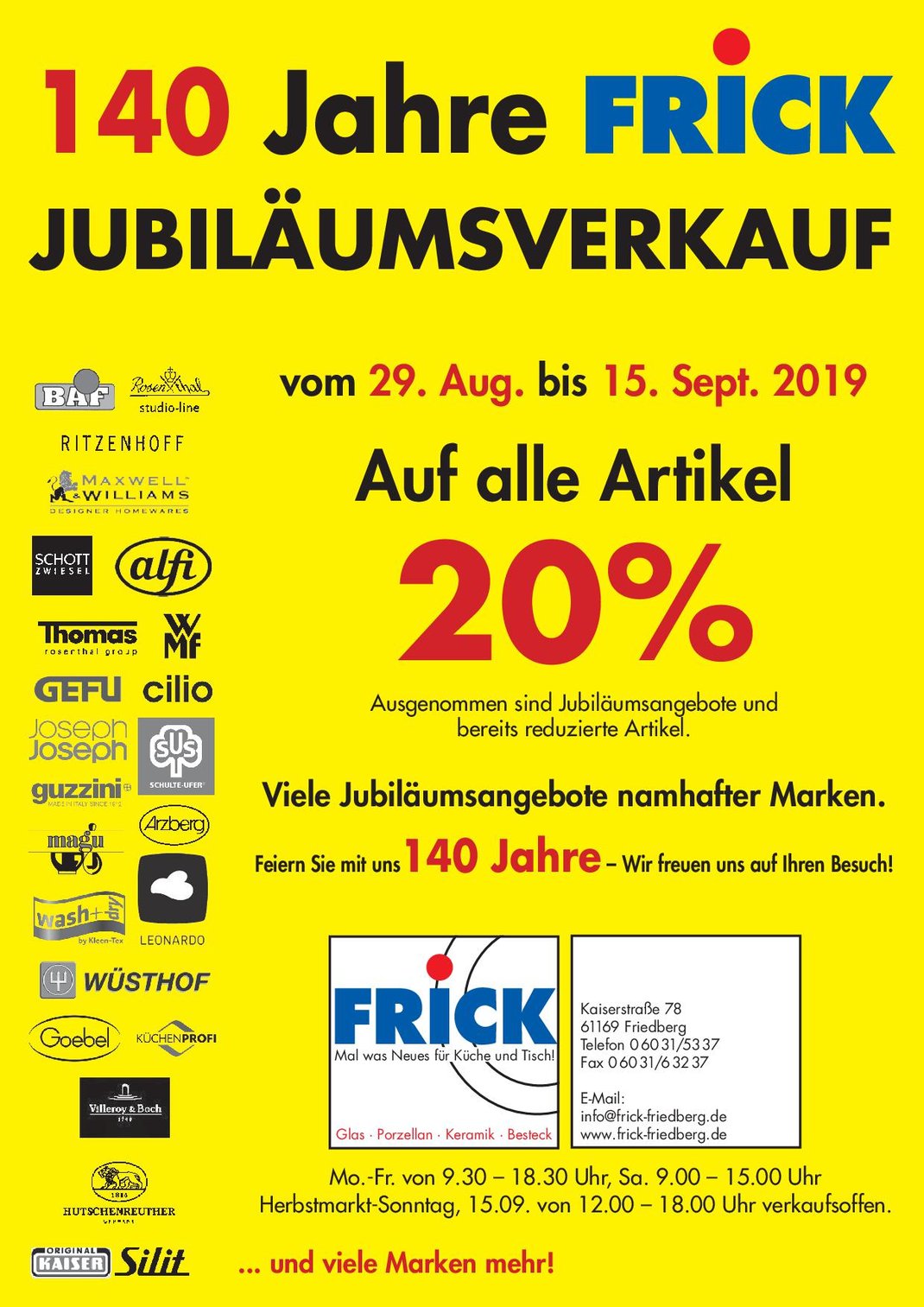 Porzellanhaus Frick / Kaiserstr. 78 / 61169 Friedberg / Tel.: 06031 - 5337 / info@frick-friedberg.de / www.frick-friedberg.de
